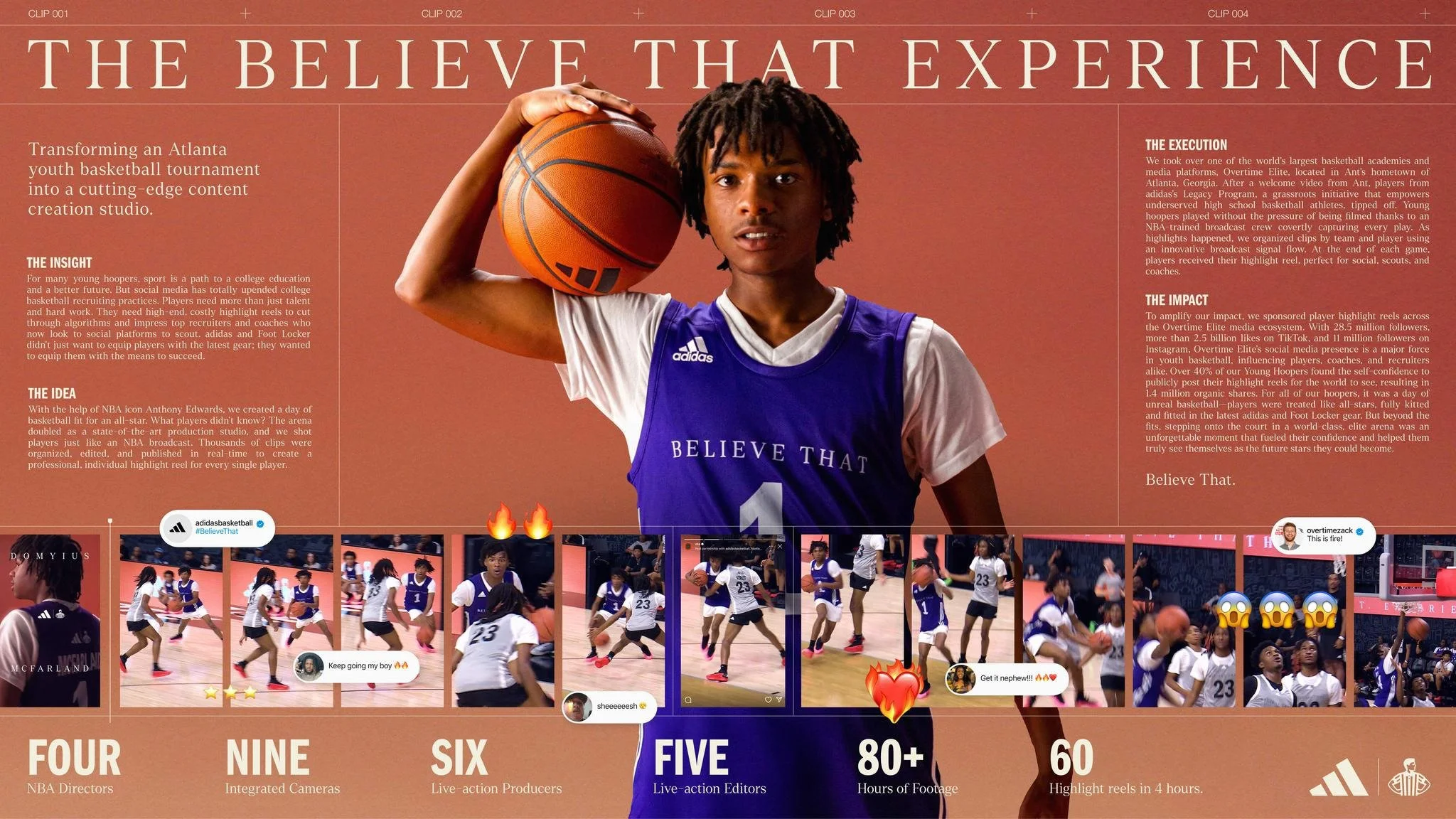 The Adidas Mixtape Factory solved that problem. We invited young hoopers from all over Atlanta to ball out in our space while wearing AE1s, and while they did, we captured content of every shot, block and crossover creating a unique, personalized mixtape for each player to post online. For the scouts, for the clout, for the love of the game.